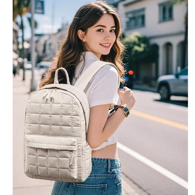 Straps: With soft puff fabric, the travel backpack for women gives you a lightweight travel. The padded straps ensure an even distribution of weight, while the breathable mesh on the backside keeps you cool and provides ergonomic support for your back. Even when filled with heavy books and supplies, you can enjoy a comfortable carrying experience ^^ Lightweight, Sturdy and