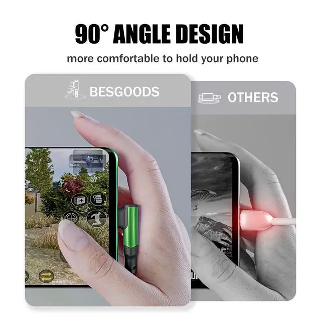 Upgraded 90 Degrees ConnectorUnlike normal USB Type C cable, Besgoods USB C cable is designed with a right angle connector, which is more friendly and comfortable for people playing games, watching videos or reading e-books who need to hold the phone in hands for a long time. ^^ Supports Fast Charging & Data Transfer This USB A to USB C cable supports fast charging, working with most universal fast charging blocks at present, such as QC and AFC wall charger. It also carries data transferring function at 480Mbps speed. ^^ 10ft Extra Long USB C ChargerThis 10ft Type C cable is long enough for daily life and office use.
