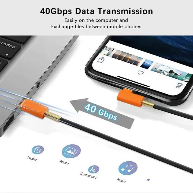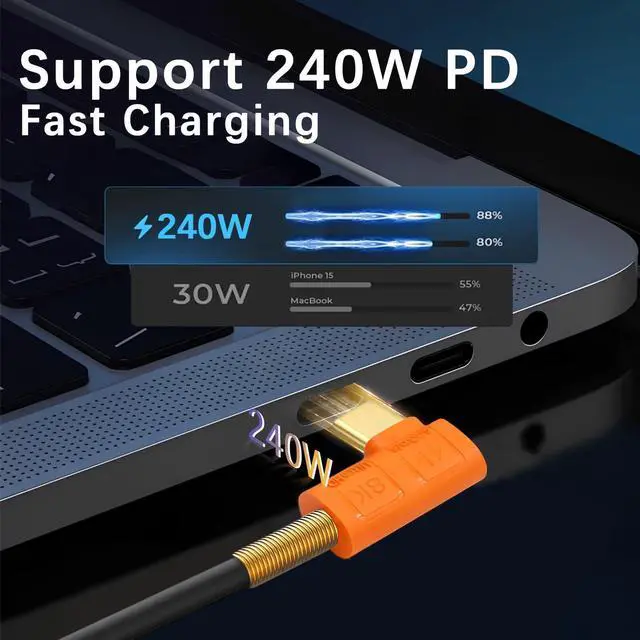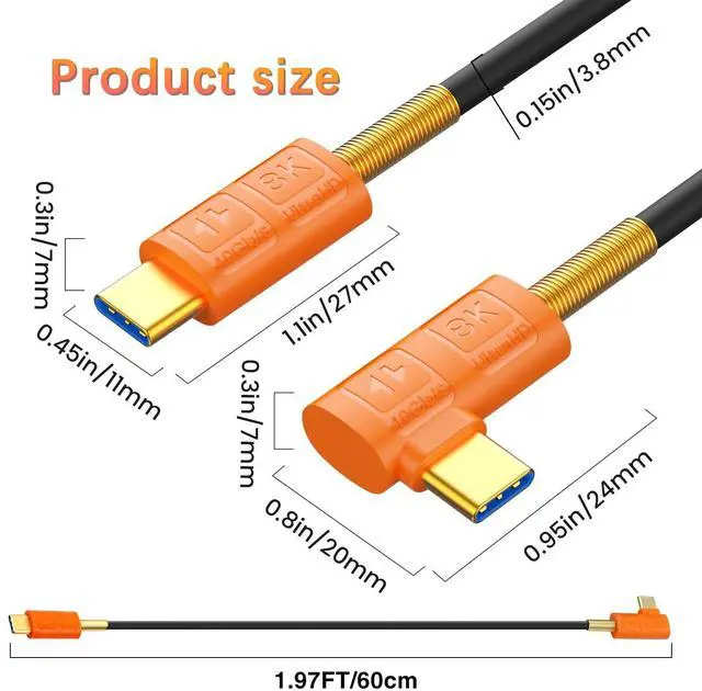 Note: Actual final data transfer speed depends on host and device support. ^^ Right angle usb c cable short supporting up to 240W (40V/5A) of power, the USB Type-C Dual Head Fast Charging Cable is fully capable of fast charging and can charge virtually any USB-C device, from cell phones and accessories to gaming laptops. ^^ usb c right angle adapter cable supports 8K UHD video for connecting display video content to a monitor up to 8K/6K or to two 4K monitors. (Dual monitors require 2 connecting cables. ) It is also possible to connect a docking station or laptop to the monitor. ^^ Silicone 90 degree usb c cable short: The advantages of silicone material are very good heat and cold resistance, good compatibility, excellent softness and feel good, has a high resistivity, and in a wide range of temperatures and frequency range of resistance value can still be stable, silicone cable operating temperature range of -60 C to +200 C range