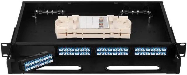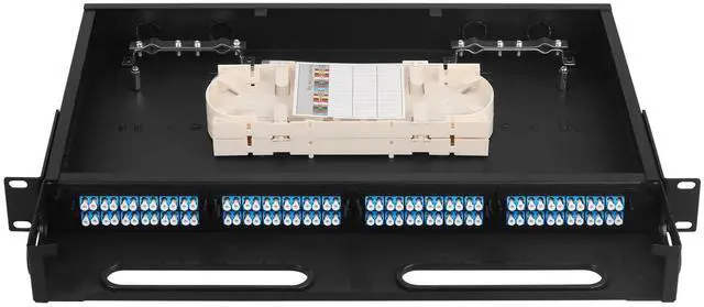 Package Included Fiber optic rack mount enclosure and 48pcs lc duplex singlemode couplers. ^^ Material Fiber optic rack mount enclosure made of high-quality metal materials to, sturdy, long service life. ^^ Push Pull Design Achieving quick installation and maintenanceNo need to tighten screws. ^^ Large Space Fusion DiscFront and rear openings designed to allow room for cable entry and exit and to a large extent, it reduces cable accumulationeffectively protecting the cable. ^^ Widely UsedData centers, premise installations, optical fiber LAN, WANtelecommunication and data processing networks CATV, instruments, communication system.