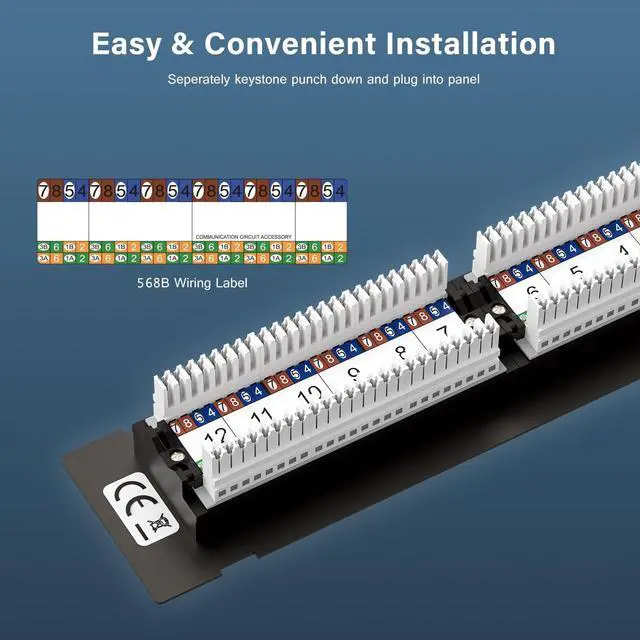 Easy to use: This patch panel enables quick, easy cable patching. Just plug Cat6 cables into its front RJ45 ports, and use a 110 or Krone punch-down tool to terminate color-coded connections in the rear