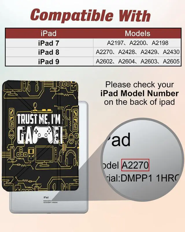 Our cases are compatible with iPad 10.2 - for iPad 9th Gen (Model A2602/A2604/A2603/A2605), 8th Gen (Model A2270/A2428/A2429/A2430), and 7th Gen (Model A2197/A2200/A2198), make your iPad can stand at 4 different positions on the table. Provide you comfortable viewing and typing experiences ^^ Our cases for iPad 7/8/9 gen are made of premium durable PU leather and soft TPU, offer a good protection from drop and shock. It is stain resistant, and easy to clean. The high-definition printing process makes clear pattern and it not fade easily ^^ This for iPad 9th gen case, for iPad 8th gen case, for iPad 7th gen case has built-in pencil holder, so you can place and remove your apple pencil easily.