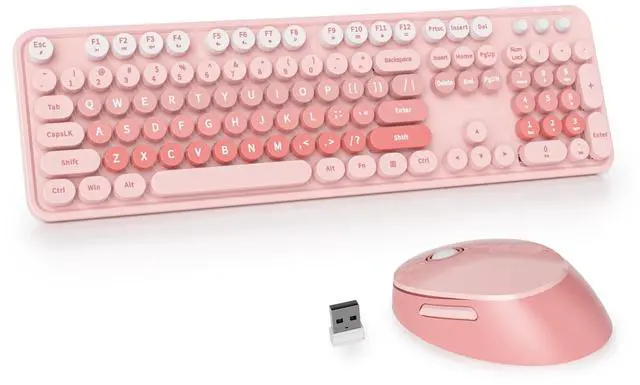 Round Keycaps: This soft keyboard and mouse wireless combo features noise-reduction keys with a square mechanism for stability and quick rebound. The round keycaps are designed for comfort, making it feel like typing on a typewriter. Enjoy long hours of use without hand fatigue with this cute keyboard. ^^ 2.4GH z