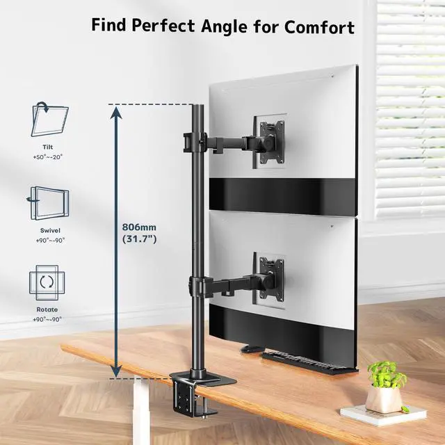 Height Adjustment & Motion Control: 34.9" height range, 90 swivel, 50 tilt, 360 rotation. Dual spring arms deliver one-finger precision and rock-solid stability for 44 lbs screenseliminating neck strain during coding, gaming, or team collaboration.