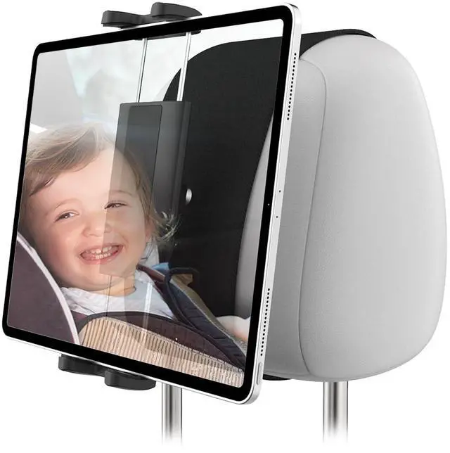 ^^ Wide CompatibilityCar rear seat tablet holder with 360 rotating adjustable clip fits all 4-13'' devices. The clip size 4.7 - 9.64 '' ( 11.93 - 24.5 cm), Thickness 0.7 '' ( 1.8 cm), which makes the clip work with or without a case Can hold on tightly. Such as ipad mini 2/3/4/5/6; ipad 11/air/ 12.9 '' series; Samsung Galaxy Tab; Fire HD Kids 10 ect; Kindle; Switch; ^^ Road Trip Essentials for KidsBack seat tablet holder for kids has 360 metal ball head adjustment to get the desired viewing angle.