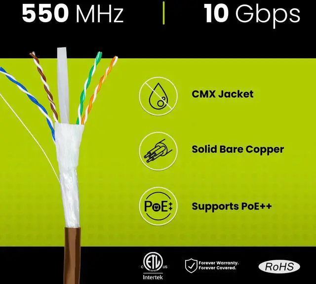 [High Performance Network Cable] Our outdoor cat 6 lan cable is 23 AWG with 4 pairs (8 conductors). Suitable for 1 and 5 Gigabit speed up to 328 feet and 10 Gigabit speed up to 165ft depending on the installation environment. Bandwidth tested up to 550 MHz.