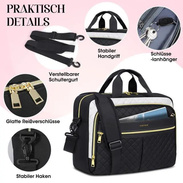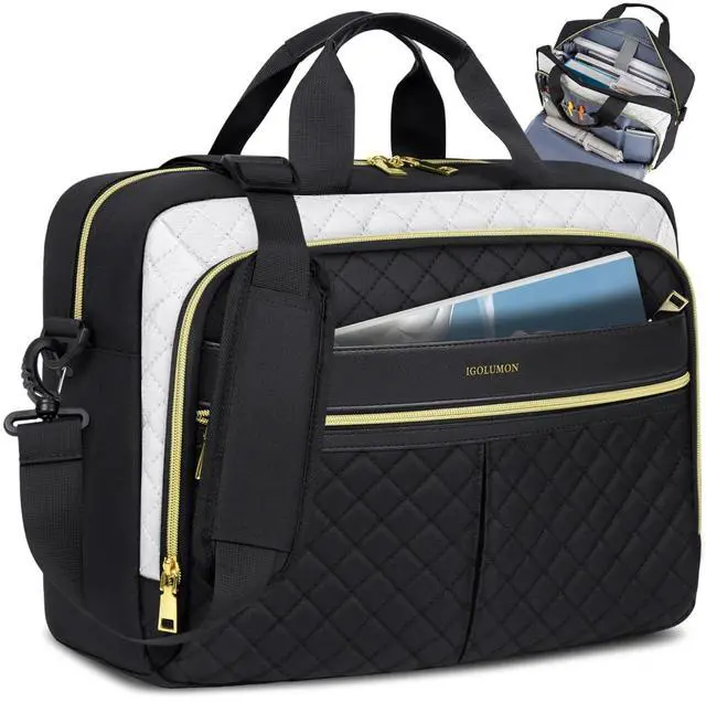 -MULTIPURPOSE: It's perfect for professional office work, business travel or weekend getaway. Its quilted look can serve as a shoulder bag, office bag, laptop carrying bag, laptop crossbody bag, business bag for women. MULITIPLE COMPARMENT & PLENTY OF POCKETS*Large main compartment can hold clothes, books and other travel or school accessories; *Padded laptop compartment holds 15.6 '' & 17.3 '' laptop and 12.9" iPad, 2 mesh pockets for like laptop charger, mouse, notebook and more; *Front organizer compartment featuring 2 Pen slots; 3 Slip open pockets; 1 mesh zip pocket and 1 key ring*2 large front zipper pocket are also suitable for magazines and textbooks, or small items like passport, power bank, tissue, purse or small accessories.
