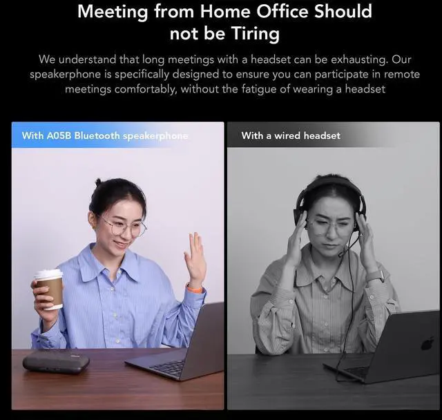 Easy Connectivity & Universal Compatibility: Connect effortlessly via Bluetooth or USB to PCs, laptops, smartphones, and tablets. Compatible with major conferencing platforms like Zoom, Teams, Google Meet, and Webex, and works with all operating systems including Windows, macOS, and Linux. This means you can easily turn any space into an office.