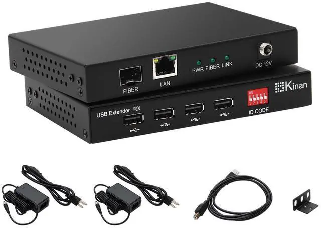 ^^ This complete kit includes one transmitter, one receiver, two power adapters with US power cords, one USB cable, a rack mount kit for organized installation, and a user manual.