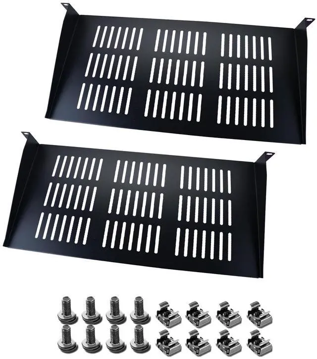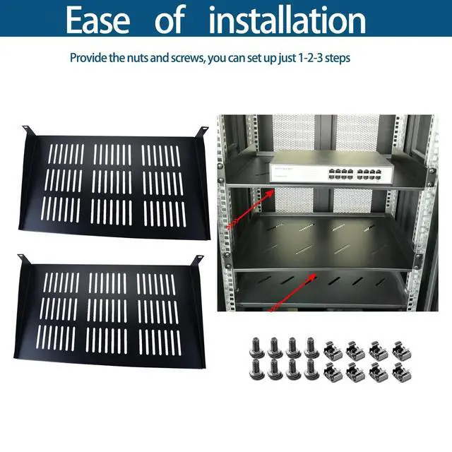 Easy Installation: This rack shelf comes with all the necessary hardware for easy installation, including mounting brackets, screws, and cage nuts. Simply attach the shelf to your 19 rack or cabinet, and you're good to go. No special tools or expertise required. 5.