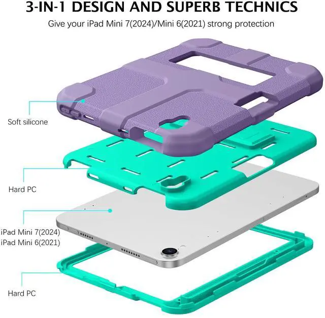 Kickstand Fuction: with 40- 120 Magnetic Ring Holder Invisible StandSimple Classy DesignLove the feeling of a case free phone in your hands? This slim case fits the bill. Its simple, thin and light TPU+PC case, add no bulky to your iPad. This black back cover is not hard, making it easier to set up, suitable for any occasion, keeping a nice looking for your iPad 10th. Durable & ProtectiveWith fine workmanship and premium Material, this case is durable for longtime usage. Natural Grip & Fingerprints FreeIts snug fit and will not make your Apple iPad Mini 7th/6th Gen 8.3 Inch overly thick, provide you a natural non-slip grip. Being frustrated by endless fingerprints on the case? This compact design hybrid hard back case doesn't pick up fingerprints easily. Packaged Included1 X Case for Apple iPad Mini 7th Generation A17 Pro 2024 (Model#A2995/A2996/A2993) & iPad Mini 6 Generation 2021 8.3 Inch (Model#A2567 A2568 A2569). (iPad and screen protector not included)