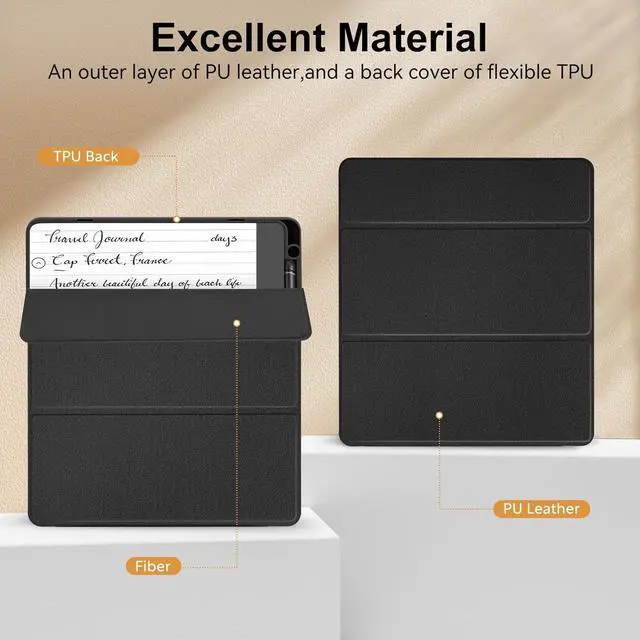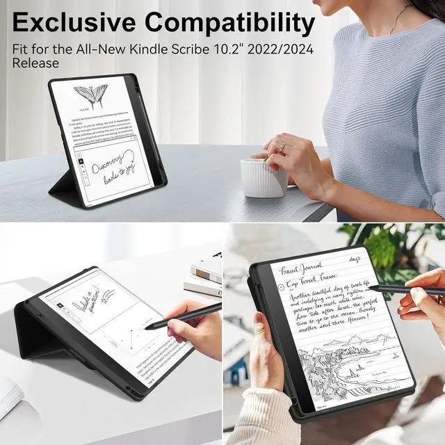 Our kindle scribe cover are made of lightweight TPU leather exterior and soft microfiber interior, which protects your tablet from daily wears, drop, shocks and scratches. Besides the tri-fold stand gives many viewing angles, facilitating your work and leisure. The special magnetic front cover has both automatic wake-up sleep function and folding stand function, which brings more convenience to your life. You can choose favorite color for your lover and friends as a Gift!