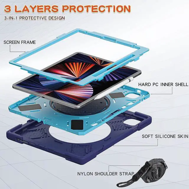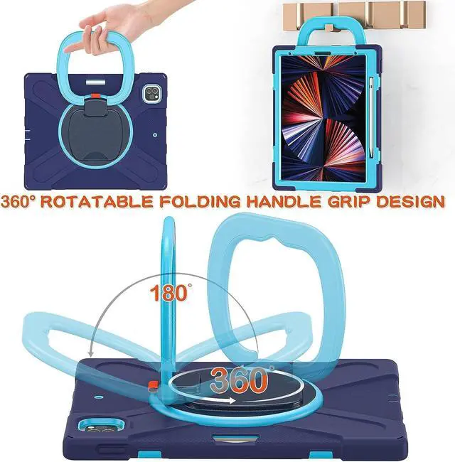 360 rotatable360 degree swivel structure supports multiple angles.The adjustable and rotatable hand strap provides an easy grip and comfortable hold (in all directions) when you are using the iPad and prevents your iPad case from being accidentally dropped and broken for better use.