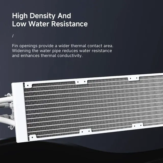 Water Resistance Design: Fin openings are designed to expand the thermal contact area, widen the water pipe to reduce the water resistance and enhance the thermal conduction efficiency, realizing High Density And Low Water Resistance, high efficiency heat dissipation, so that the CPU heat dissipation is not a problem ^^ igh