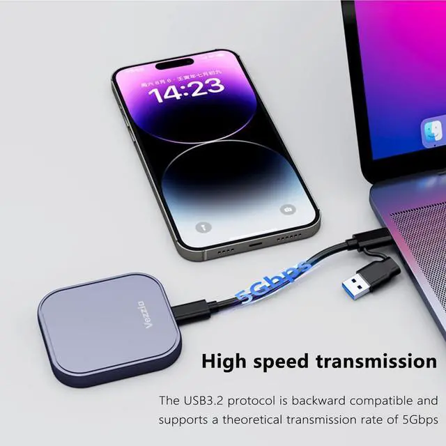 Blazing-Fast Transfer Speeds: Vezzio external solid state drive with Type-C USB 3.2 Gen 2x2 offers lightning-fast read speeds up to 510MB/s and write speeds up to 470MB/s, giving your workflow a much-needed boost. Based on internal testing, performance may be lower depending on host devices, interfaces, usage conditions, and other factors ^^ 3.