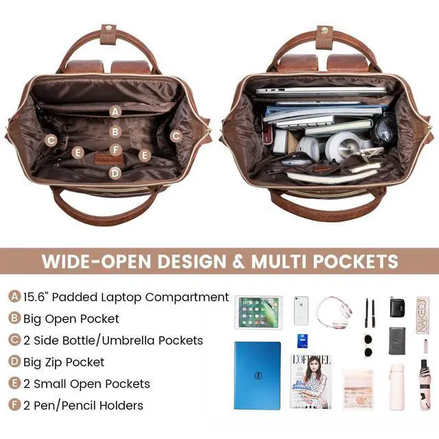 Women: STURDY UPGRADED REINFORCED SEAMS. Made of high quality waterproof PU leather, thick shoulder straps, unique leather handles, no-slip zippers. HEAVY DUTY & DURABLE. Total of 2 compartments and 19 pockets, easy to organize all work necessities, college supplies, travel essentials.
