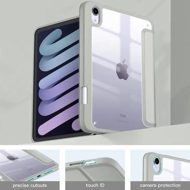 Mastten for iPad Mini 7 Case A17 Pro, for iPad Mini 7th/6th Generation Case 2024/2021 8.3 Inch with Pencil Holder, Hybrid Slim Clear Back Shell Cover Kids, Auto Wake/Sleep, LightGray