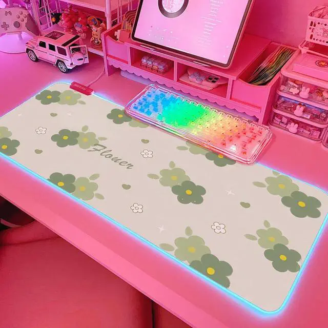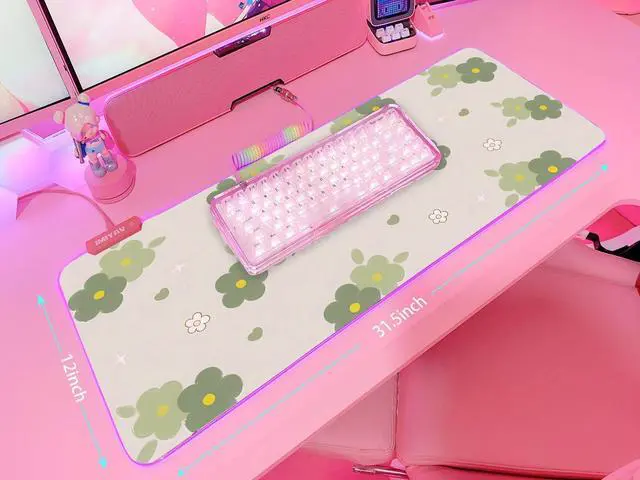 JMIYAV Pink RGB Gaming Mouse Pad 31.5x12 Inch PC XL Large Extended Glowing Led Light Up Desk Pad Non-Slip Rubber Base Computer Cute Mousepad Mat Desk Accessories Gaming Setup 1681