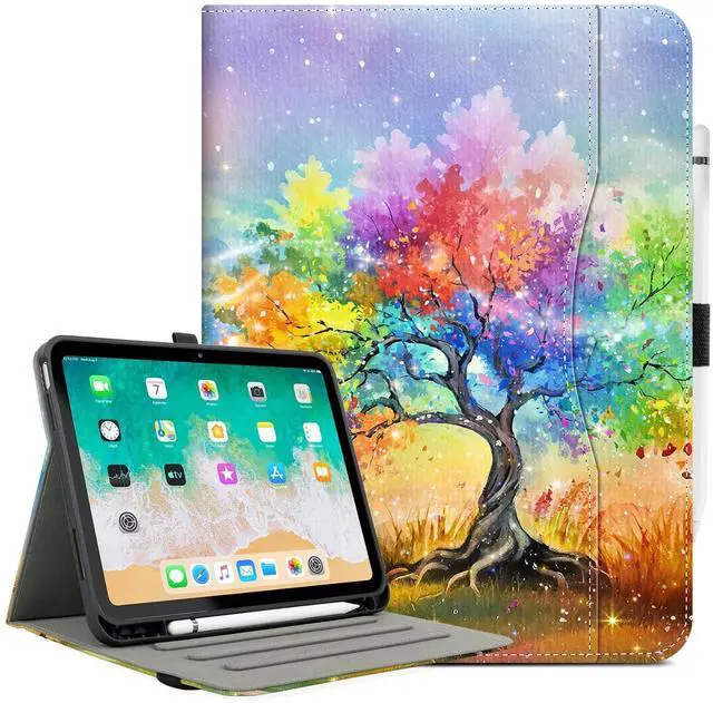 Number: A2696 / A2757 / A2777 / A3162)Quality MaterialMade of reinforced external PU leather dual layer construction and soft internal microfiber lining to give you 360 full protectionSmart Auto Sleep/WakeMagnetic iPad 10th Gen Cover instantly wakes up iPad when opened, and makes it go to sleep once closed (extend battery life). Upgraded Anti-Slip StripesWith three anti-slip stripes, you can adjust it to multiple stable angles, holding up great for viewing, video watching and reading at home, or presenting at your meeting. Hand StrapBuilt-in hand strap, coupled with an elastic band to keep the case OPEN, give you a comfortable single-hand use experience. External Elastic BandWhen you don't use it, strap help you more firmer to fix your ipad. Do not have to worry about loss and loose. Front Document PocketDocument Pocket is designed for you to store your business cards, Cash, bank cards, notes or bills while going outside. Buld with Pencil HolderIt is more convenient save your Apple Pencil.