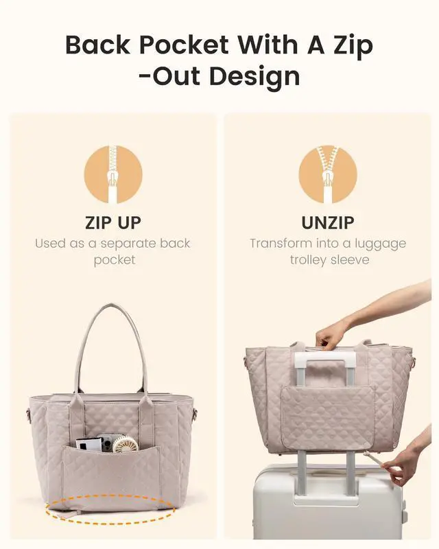 ^^ Versatile Laptop Tote Whether you're a teacher bag, nurse bag, or business professional bag, this work bags for women easily adapts to various life situations. Whether carried by hand, over the shoulder, or across the body, the flexible carrying style allows you to easily adapt to various situations, including work, school, and travel, ensuring you always have a unique personal style. ^^ Safe and Convenient DesignDesigned for convenient travel, this laptop bag features an integrated luggage cover that easily attaches to a luggage trolley, keeping your hands free.