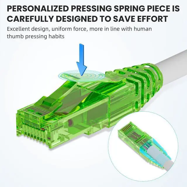 Home Networks: Withstands 1, 000 insertion cycles (20N-50N mating force) 3X more durable than standard Cat 6 connectors. Snag-resistant boot protects the locking tab from breakage in tight home entertainment setups. ^^ Dual Coding for