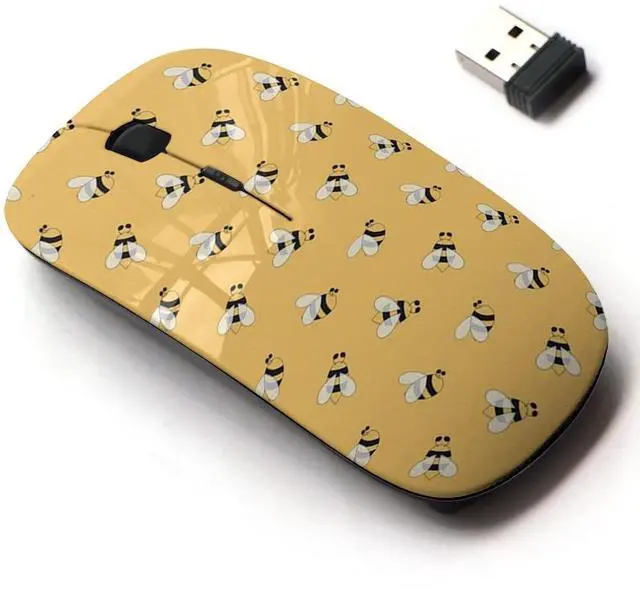 2.4G Wireless Mouse with Cute Pattern Design for All Laptops and Desktops with Nano Receiver - Bees Yellow Insects