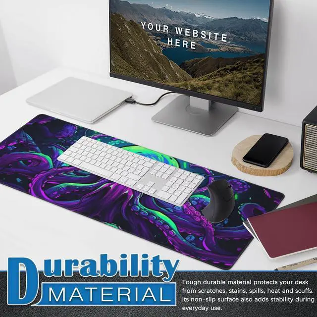 Large Mouse PadThe desk mouse pad measures 31.5 x 15.7 inch, with 2 mm thickness, big enough to accommodate your computer, laptop, keyboard and other desk items, and still leave plenty of space for your mouse to move all around. ^^ High qulity Workmanship and MaterialsThe mouse pad has delicate stitched edges, it is individually hand crafted with high quality warkmanship so not fray, deformation and degumming in prolonged use, relax to use. The computer mouse pad is thick and feels soft in the hand, which will provide comfortable support while typing, reading, writing and even sleepping.