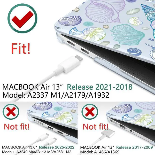 • Compatibility: Only designed for MacBook Air 13.3 inch 2021 2020 2019 and 2018 with Touch ID and Retina Display (Models M1 A2337, A2179, A1932). Not compatible with MacBook Air 13.6-inch (M4/M3/M2 chip, 2025-2022). Check your device model before purchasing.