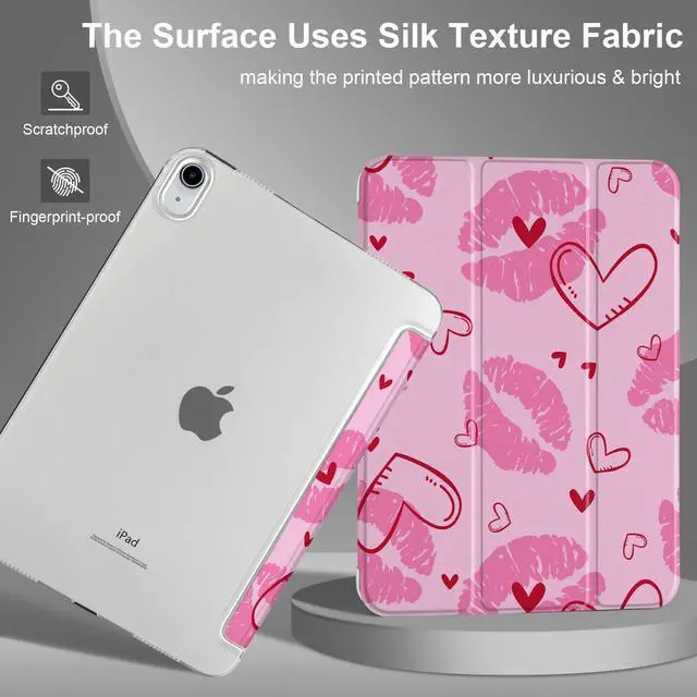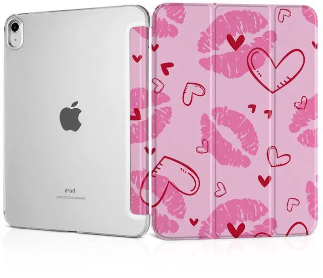 MEEgoodo for iPad A16 11th Generation Case 2025 11 inch, Tablet Cases for iPad 10th Generation 2022, Tablet Cover with Silk Texture & PC Clear Back Cover, Cute Kiss & Love