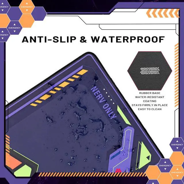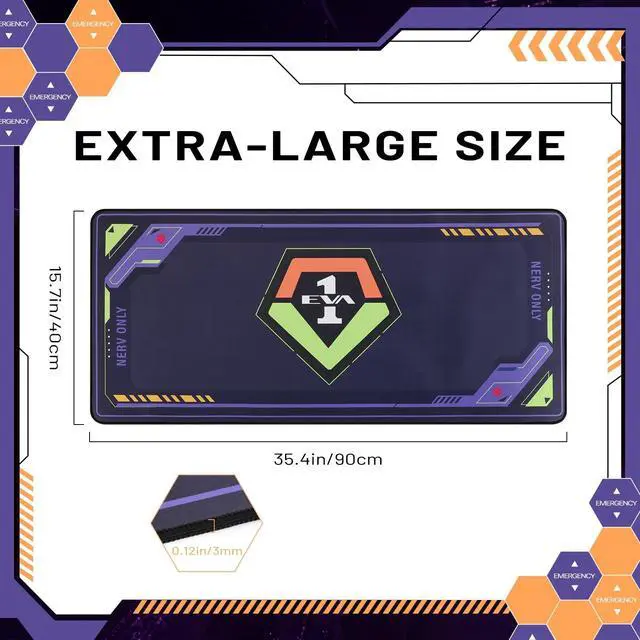 Dive into the Neon Genesis Evangelion universe with this mouse pad! Featuring EVA Unit-01s iconic emblem and NERV ONLY detailing in vibrant cyberpunk hues, its a must-have for fans. At 35.4" x 15.7", it offers ample space for your setup. The non-slip base and durable edges ensure stability and longevity, Perfect for EVA fans, gamers, and office users alike, this mouse pad combines fandom flair with practical functionality. Elevate your desk setup today!