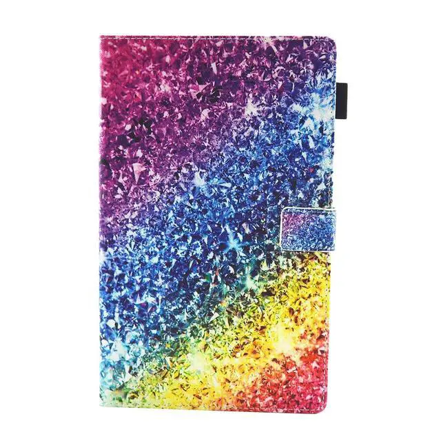 Product Features:. 1 Folio flip design with stand, which can set up multiple horizontal standing angles.. 2 Made from premium synthetic/PU leather with soft TPU back shell, provides total front-and-back protection.. 3 Soft and non-scratch microfiber interior, protect against shock, scratches and dirt.. 4 Wallet case has card slots convenient for storing your cards, cash, photos.. 5 Slim pencil pocket for the stylus pen. Ultra slim and light weight design.. 6 Support auto sleep/wake feature; The magnetic buckle securely protects the tablet.. 7 Precise cut-outs and full access to all controls and features. A good gift for feiends, family, child, boys, girls, women, men, ect.. Fashion Case contains rainbow colors and colorful painting pattern, black, blue, brown, rose, rosegold, green, orange, pink, purple, red, silver, white, navy, violet, teal, yellow, skyblue, darkblue, gray, ect.