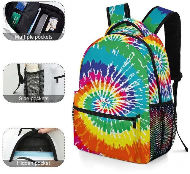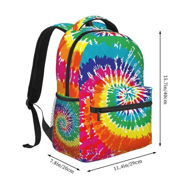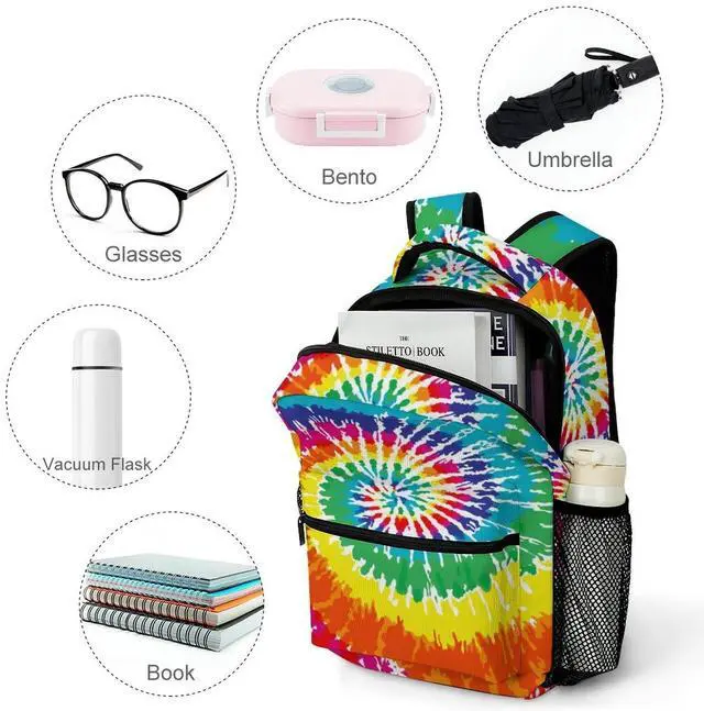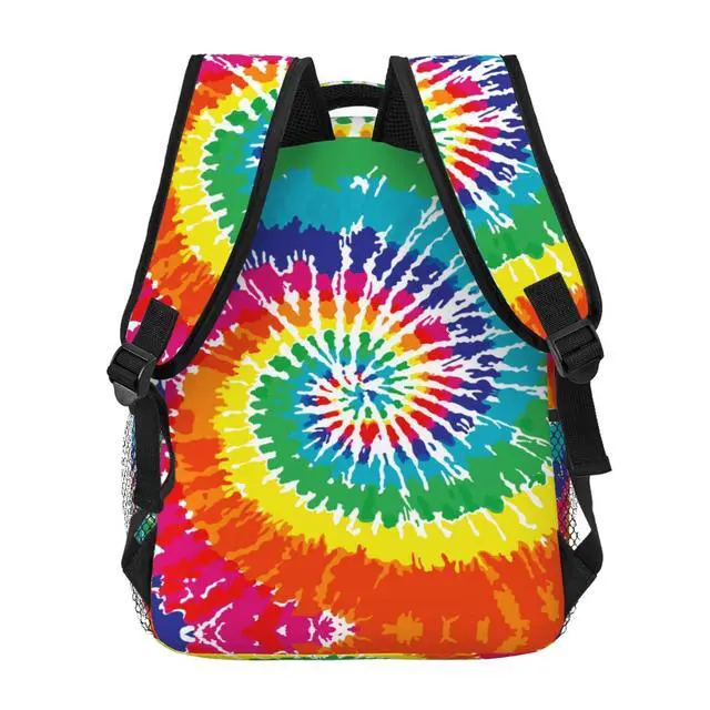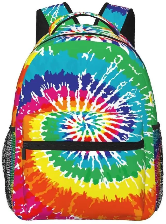 UEQIKI Tie Dye Neon Colorful Lightweight Travel Backpack With Zipped Front Pocket Printed Laptop Bag Fashion Casual Daypack For Work, Hiking, Camping Unisex