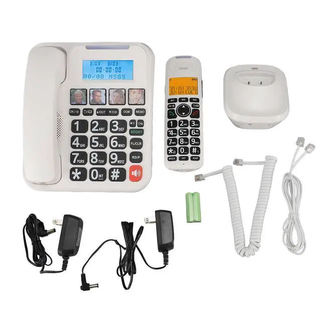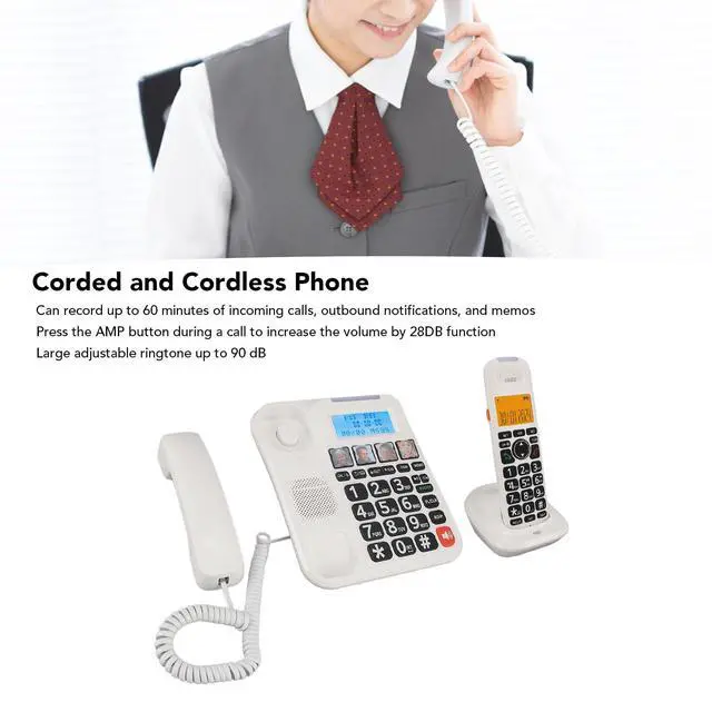 Record Incoming CallsThis reliable cordless phone system comes with a digital answering machine that can record up to 60 minutes of incoming calls, outgoing messages, and memos. It features a one-touch AMP that boosts call volume by 28dB, ensuring clear audio even in noisy environments. ^^ Photo Dialing & Enhanced AccessibilitySet up four frequently dialed contacts with photo attachments for quick, one-touch dialing. The system includes an extra-loud adjustable ringtone (up to 90dB), voice guidance, and superior sound quality, making hands-free calls effortless and accessible for all users. ^^ Expandable Internal CommunicationEach base unit can register up to five handsets, and each handset can connect to four base units, offering flexible expansion.