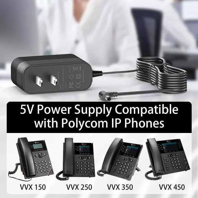 Compatible with 5v power supply adapter for Polycom IP Phones compatible with Compatible with Polycom VOIP IP Phones Poly VVX 150 250 350 450, compatible with Poly Edge B, E400, E300 EM50 ^^ Charger Specificationspower supply adapter for polycom ip phones vvx 150 250 350 450.