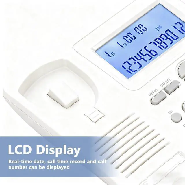 [Lcd Display] Real-time date, call time record, and incoming call number displayed on the lcd screen. ^^ [ Material] Made of abs, providing durability for long-term use. ^^ [Large Buttons] User-friendly design with large buttons for easy visibility of numbers and letters. ^^ [Clear Sound] Noise cancelling function ensures clear communications by minimizing external noises. ^^ [Extension Set] Dual port design for easy extension; supports extension set.