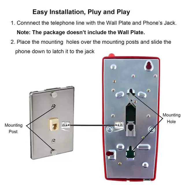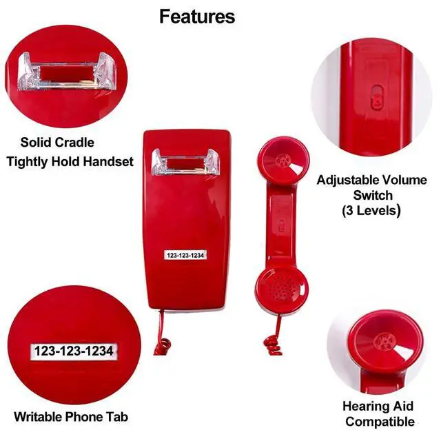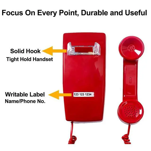 ^^ Mechanical Ringer & Hearing Aid CompatibleThe Wall Mount Phone for Landline chooses Metal Bell, which is very loud. Never Miss Any Calls. The handset is HAC, good phone for Elder. ^^ Trouble Free The Wall Phone without Keypad is Easy to Install, which can only answer the incoming calls, without the risk of dialing outgoing calls, very important for hotel lobby, Kitchen, Pizza Shop, Bar, Garage, bathroom, etec.