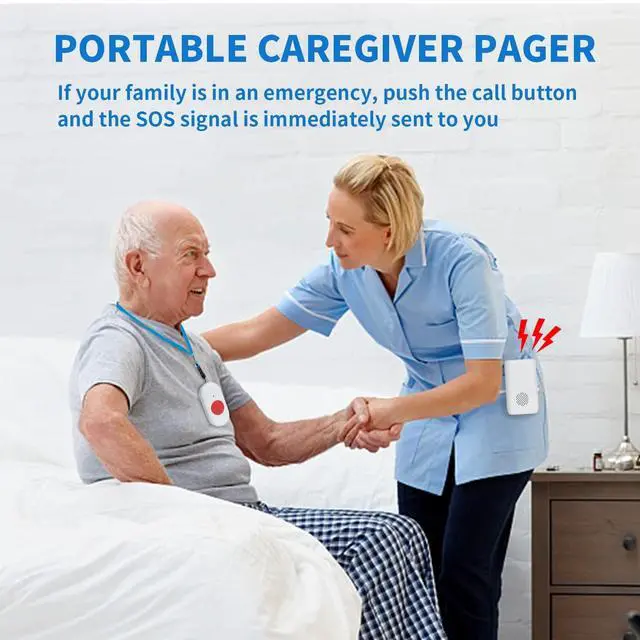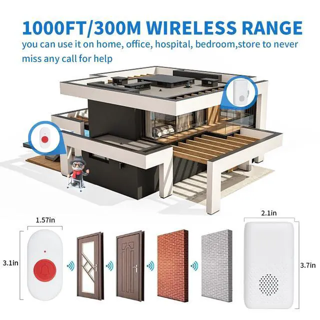 Caregiver Pager Wireless: Allow caregivers and residents to be free while ensuring that help is still available at the touch of a button, the open area working range is 800+ ft, you can take it to the bedroom, kitchen or yard. ideal for elderly, seniors, patients, disabled ^^