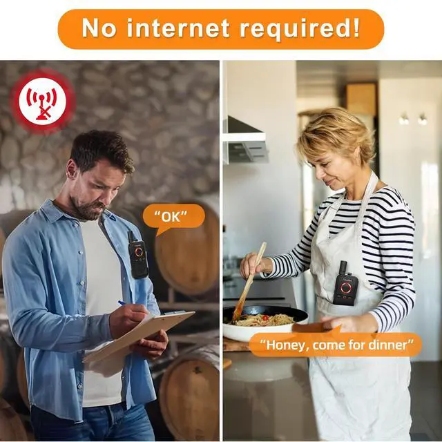The intercom system allows you to "one-talk to-one, one-talk to-two" communication. ^^ DUAL PTT KEYS - With a big round PTT button on the front, it is convenient to press with your thumb when holding it, another PPT on the side of the radio, you can easily push to talk. ^^ APPLICATION SCENARIO - This wireless intercom system can use in a wide range, making them ideal for hotels, restaurants, shopping malls, warehouses, family service, security, and school service.