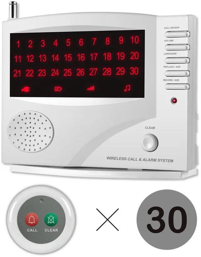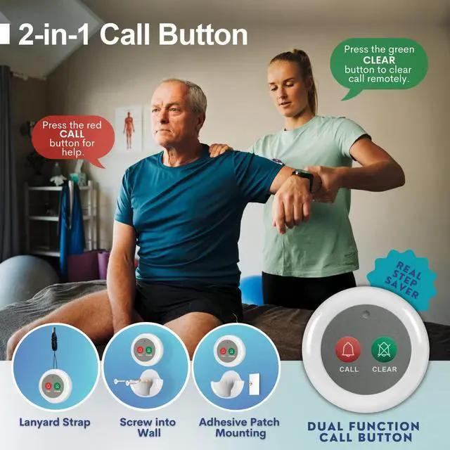 SYNLETT Wireless Calling System with dual function call buttons is designed for nurses station, assisted living, restaurants, clinic, nursing home or small care facilities, retirement home, long term care facility, hospital. It allows caregivers or service staff to monitor calls and alerts easily. There are a number of different wireless call buttons can be programmed into this multi-functional call system, including basic call buttons, call light system, panic button system, window/door exit alarms, PIR motion sensors, and caregiver pager. The 2-in-1 wireless dual function call button has CALL and CLEAR features.