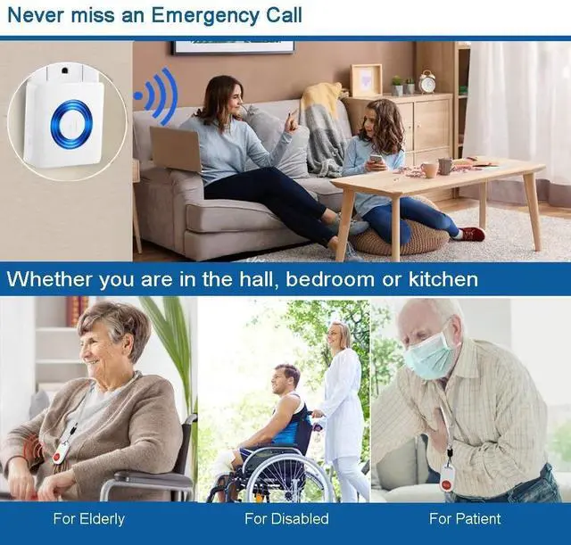Wireless Caregiver Pager Nurse smart Call system with IP55 Waterproof Call Button for Home/Elderly/Patient attention Pager (1 Receiver + 1Call Button )Customize and Expandable. Each wireless receiver can work with 50pcs transmitters, each transmitter can pair with 50pcs receivers and set to different or same music.