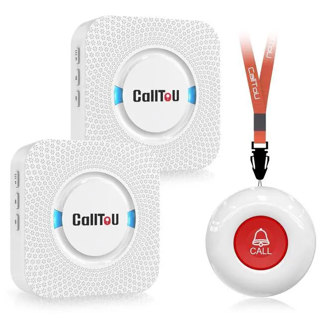 [ Wireless Guard ] 2 Receivers 1 Call Button. Allow caregivers and residents to be free while ensuring that help is still available at the touch of a button, ideal for elderly, seniors, patients, disabled ^^ [ Easy to Carry ] The receiver can be moved with the caregiver and the open area working range is 500+ ft, you can take it to the bedroom, kitchen or living area (receiver requires plugging into an outlet). The call button can also be hung around the neck of the person with a neck strap who needs help like a pendant or secured with a bracket or double sticker ^^ [ Smart Ringtones ] The receiver of caregiver pager has 55 ringing tones to choose from and 5 level adjustable volume from 0db to 110db.