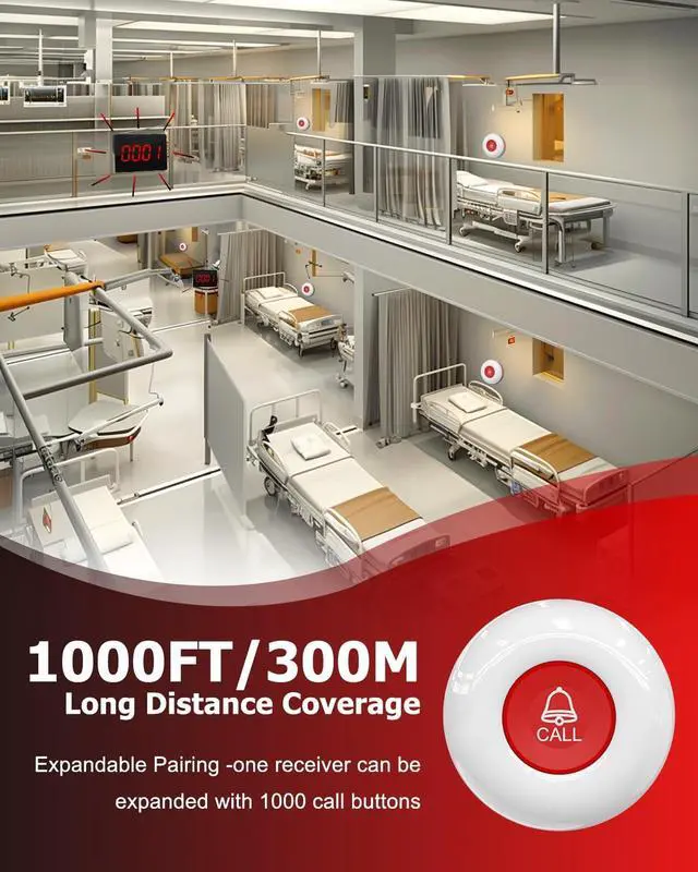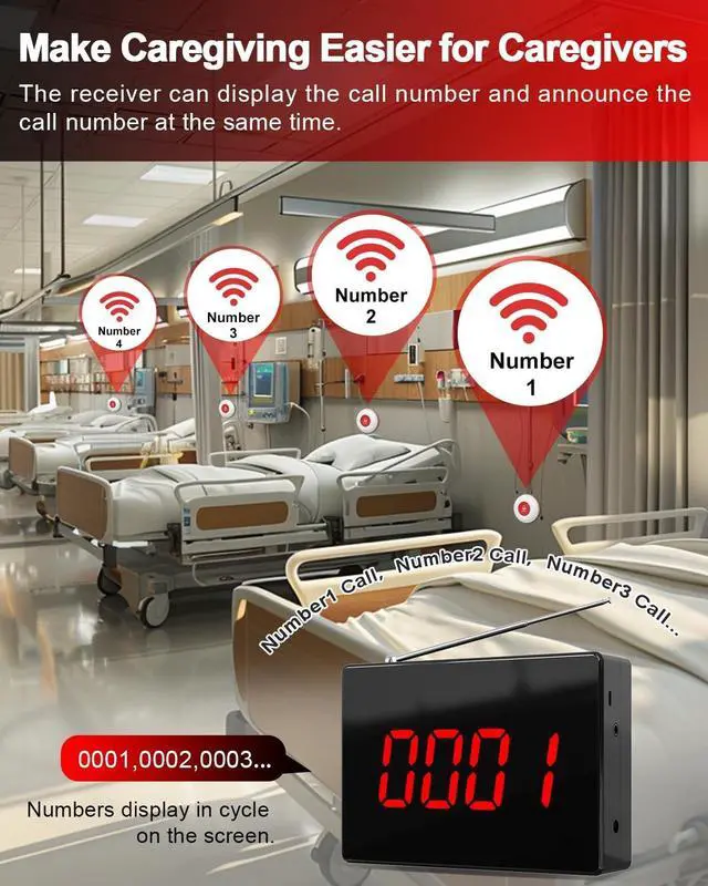 UPGRADE: The upgraded wireless calling system displays and voice announces the call number, making it easier to identify which room requires attention. Additionally, you can set the alert to repeat multiple times instead of the usual single beep, so patients or dont need to press the nurse call button again to get attention. ^^ EXPANDABLE TO 1000