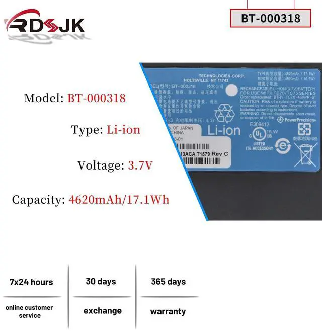 Part Numbers: BT-000318 BT-000318-01 82-171249-01 82-171249-02 BTRY-TC70X-46MA1-01 BTRY-TC7X-46MA2 BTRY-TC7X-46MPP-01 1ICP5/42/62-3 ^^ 100% New from Manufacturer. Up to 500 recharge cycles over the life of the battery. The actual operation time will depend on how much electricity is required by the device and how you use it ^^ For first use, please discharge the battery to 5%(not to 0%) and then charge to 95%, and cycle 3-4 times