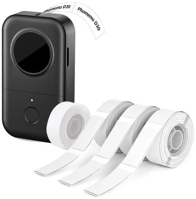 Item: Phomemo D30 Label Maker + 3 Rolls of Black on White Continuous Label Tapes + 1 Rolls of Black on White Pre-cut Label Tape 12x40mm