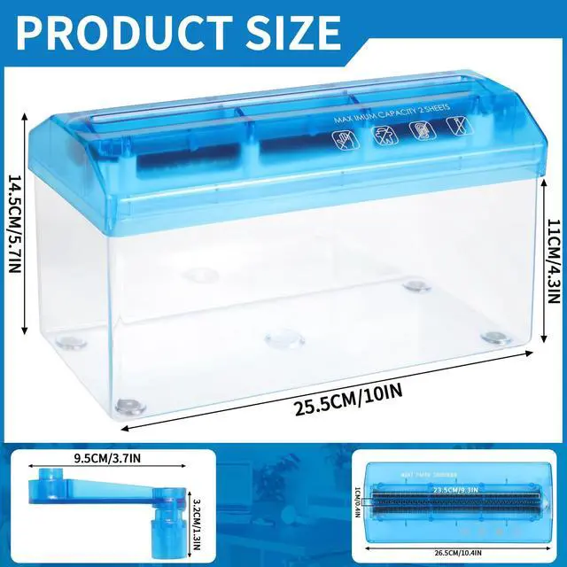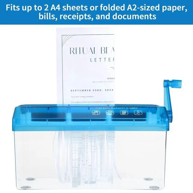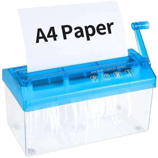 A4 Paper Manual Shredder - Blue Portable Mini Paper Grinder Capacity 3L for A4 Files Documents Straight Cutting Tool Home Office Desktop Supplies WD23BL