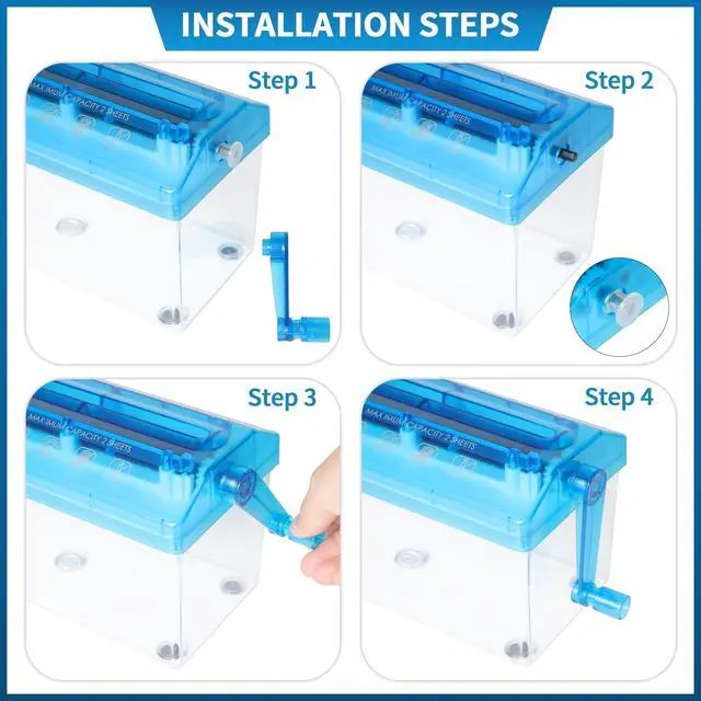 • Manual Operation, Stress-Relieving Fun - Simply crank the handle to shredno electricity neededmaking it a fun, eco-friendly alternative to electric models.