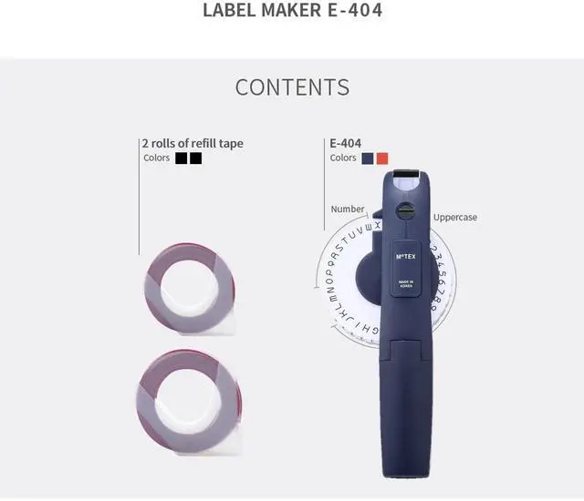 Creates high-quality embossed adhesive labels by intuitive turn and press labeling system ^^ Prints letters, numbers and emoticons. ^^ Ergonomically designed for ease of use and modern look ^^ Easy to use, portable, No need battery or electricity. ^^ Comes with 1 label maker, 1 pre-loaded tape and 2 wheels (Alphabet & Number & Emoticon)