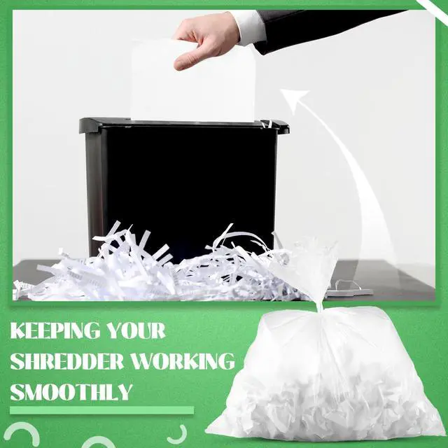 Capacity Design: Extra-large 15-gallon bags ( 27.56" x 31.5" ) accommodate high-volume shredding needs. Clear plastic allows easy monitoring to prevent overflows.