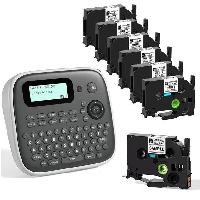 Gray Label Maker Machine with 7PK Tapes Bundle (Black on White*7)