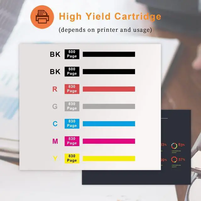 Page Yield: Up to 500 pages per Remanufactured for 312XL T312XL Black ink cartridge at 5% coverage (Letter A4), up to 830 pages per Remanufactured for 314XL T314XL Cyan/Magenta/Yellow/Gray/Red ink cartridge at 5% coverage (Letter A4) ^^